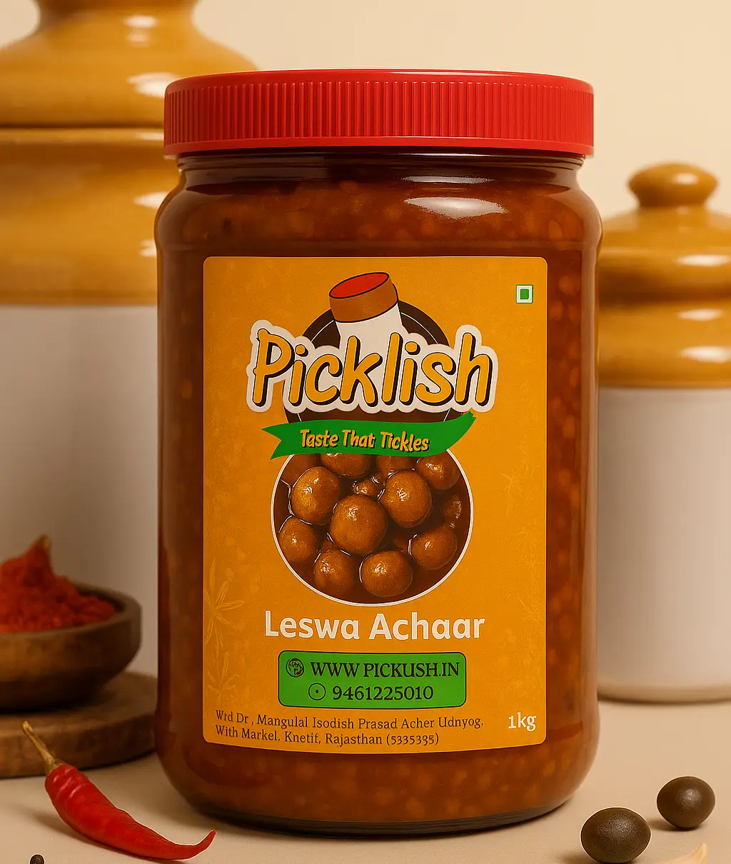 Indulge in the timeless taste of Leswa Achaar, a traditional Rajasthan pickle made with handpicked tender berries, sun-cured, and blended with rich masalas. Every spoonful bursts with bold flavor and an unmistakable homemade essence.